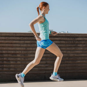 Our Turquoise Seas IMPI Elastic Running Shorts are a tranquil mix of of Blues and aqua that will make you fall in love!