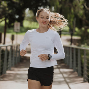 “The long sleeve running tee is made of incredibly comfy and high-quality material. It’s sooooo comfy and also lightweight – great for running and other exercise. I love it so much!” – Freya S.