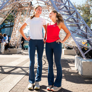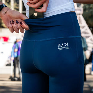 The IMPI Flared Leg Tights are a perfect staple for any wardrobe. Crafted from a comfortable and stretchy polyester spandex blend, these navy tights feature a high waist and a flattering flared leg design. Highlight any look with this timeless piece.