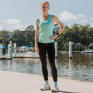 The self-fabric higher waist provides a snug yet flexible fit that sits just right for maximum comfort, keeping you supported whether you're running, powering through sprint session, or hitting the gym.