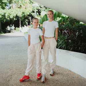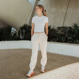 Cozy up in style with our Ivory Sweatpants. Made from ultra-soft fleece, these sweatpants are the perfect blend of comfort and fashion. Whether you're lounging or out and about, these sweatpants will keep you feeling cozy and cute all day long. Enjoy total comfort with features like elasticated hems and a drawcord for the perfect fit.