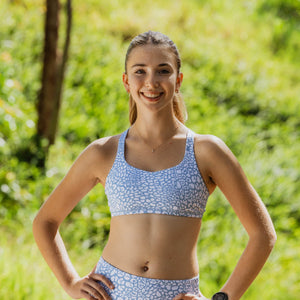 The Strappy Girls Crop Top in Blue Leopard is designed to empower active girls to move with confidence. This stunning blue print pairs timeless style with pure comfort, making it your go-to choice for every season and every adventure. Built with soft poly-elastane fabric, flat seams to minimise irritation, and a chic criss-cross strappy back, it supports you through running, gymnastics, netball, soccer and beyond. With medium support, moisture-wicking properties, and a comfortable stretch that moves with your body, you'll feel unstoppable. Available in sizes 8 years to Ladies 10.