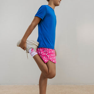 Speed meets style in the IMPI Boys Split Leg Running Short, our limited edition Valentine's special featuring a cheeky X & O's design. The split hem construction unleashes unrestricted movement, letting young athletes run faster and jump higher without compromise. Crafted from lightweight, breathable fabric, these shorts keep cool during intense play while the bold, vibrant print adds personality to every workout. Built for boys who refuse to choose between performance and pizzazz!