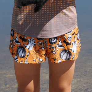 Scare off the competition! Get ready for a wickedly speedy run with Spiders, Ghosts, and Pumpkins! These shorts are lightweight and tough, featuring a comfy built-in brief. Super soft and ready to race, they’re perfect for a spooktacular workout!