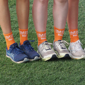 Our Longer length Orange and White socks will put a spring in your step with these IMPI Running socks for girls and boys. They are also great for riding, walking, jumping, throwing (not the socks we hope these stay on your feet), tennis, netball and all sorts of other sports that may tickle your fancy.